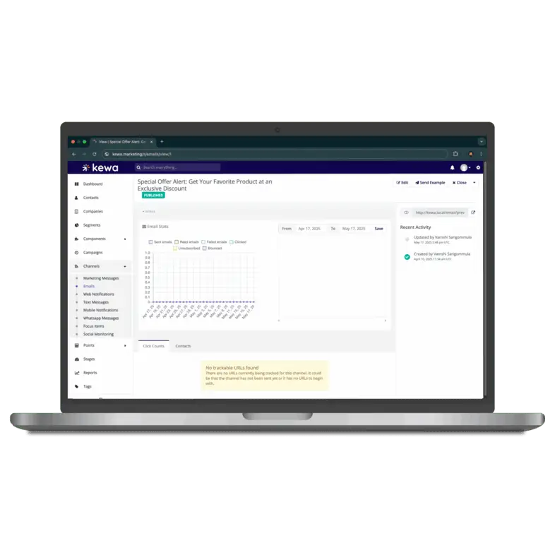 Kewa Marketing is our powerful, all-in-one marketing automation platform built to help businesses attract, engage, and convert leads with precision. Whether you’re running targeted email campaigns, web push notifications, or social media marketing, Kewa simplifies your entire marketing process — from lead generation to customer retention.